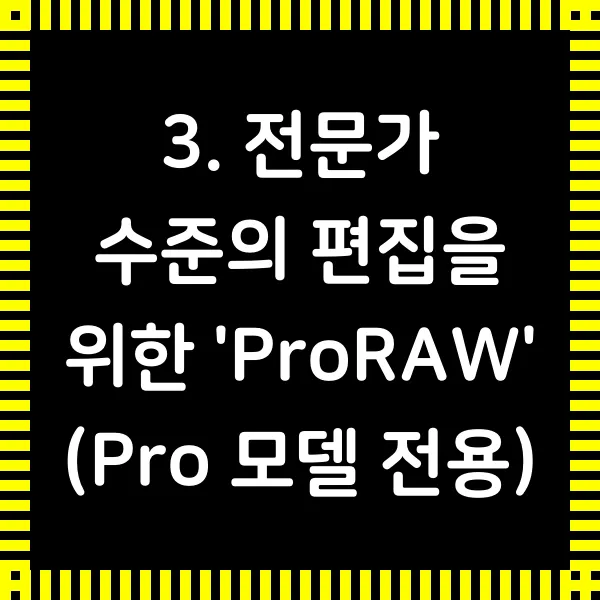 3. 전문가 수준의 편집을 위한 'ProRAW' (Pro 모델 전용)